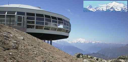 Restaurant Bettmerhorn (2700 m) met de Matterhorn en Weisshorn