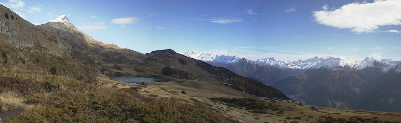 Bettmersee - Blausee: kijk rond van Bettmerhorn (oost) naar Breithorn (zuid)