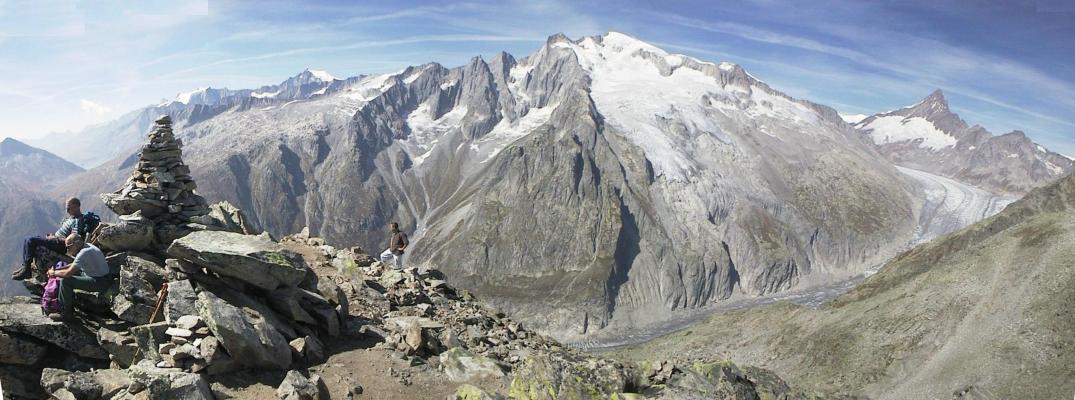 Naar de top van de Risihorn (2875 m) Anderhalf uur omhoog vanaf het bergstation (op 2480 m) van de stoeltjeslift vanuit Bellwald. Gemakkelijke wandeling, ook voor kinderen, behalve de laatste vijf minuten. naar Bellwald | naar de Risihorn